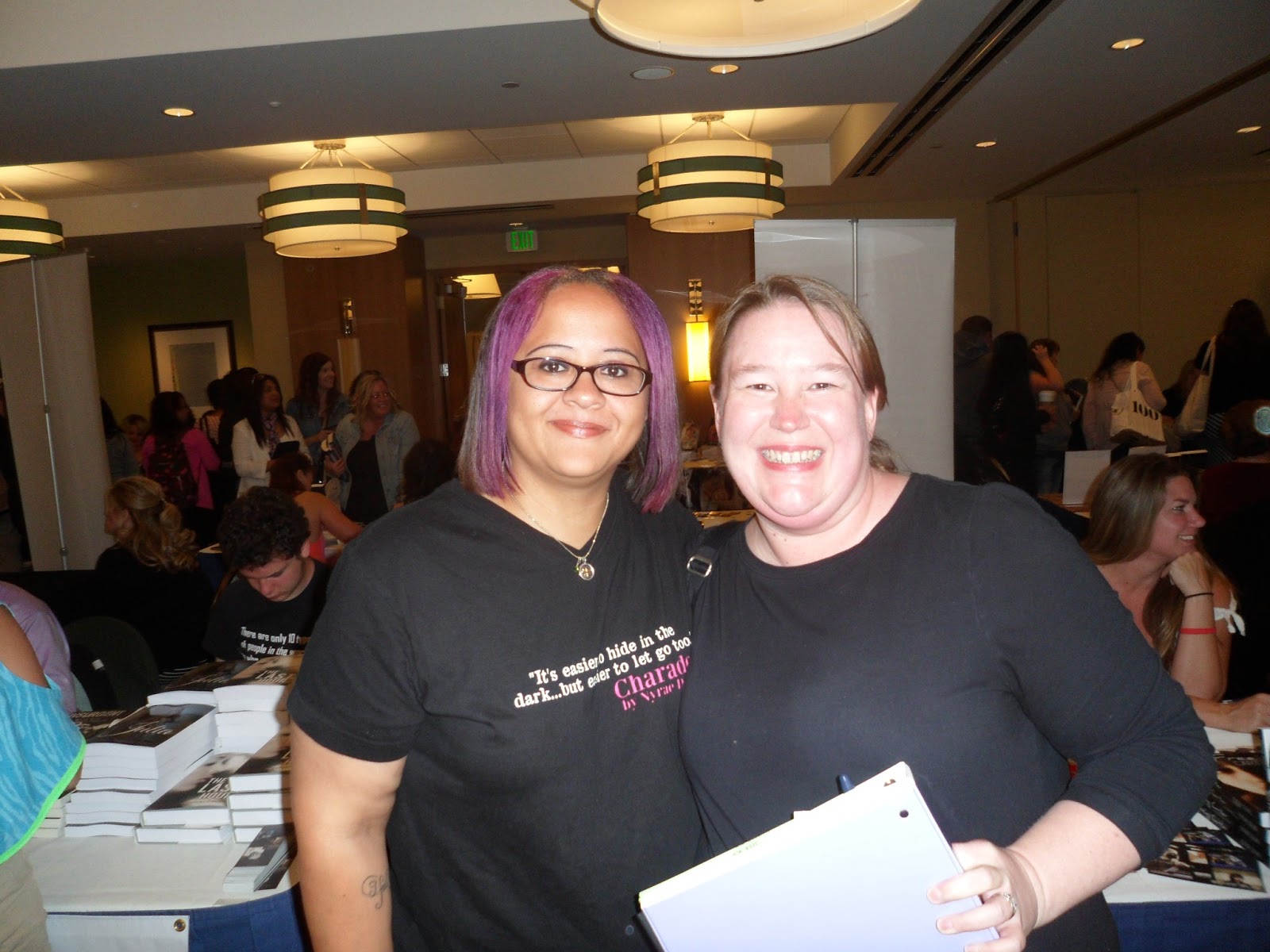 Last weekend Scott and I went to our first big book signing author event - San Francisco Independent Authors Event. I discovered a few things:*Meeting some of my favorite authors is like meeting rock stars - and I will be telling my students this when school starts up again in August (it was a discussion we'd had during first period last spring)*Having an e-reader is awesome... except that authors can't actually sign the books you have on it. You have to get creative. I took pictures of the books on my nook to make an author autograph scrapbook. I saw a few people getting their reader covers signed (but what happens when you run out of room?).*Giving my own signed postcard to authors with books I love is pretty awesome!*Having Nyrae Dawn suggest we go to the author event in Pomona next month is the best way to get Scott to agree to go. ;-)
