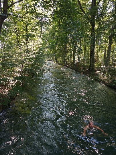 And, at that point, I was museum’d out. But the day was still relatively early, so I did what Munich folks do when it’s hot out: I headed to the English Garden. There, this is what they do: they float down the lazy river, letting the swift current carry them through the park.
