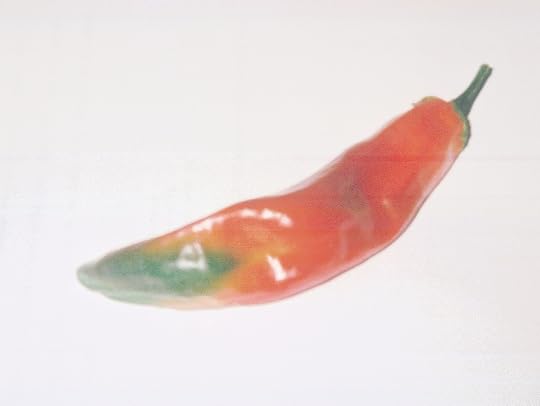 By the end of the story in the Reluctant Medium, she had decided on a name: Chile Pod. She chose it because of the cat’s mottled fur colors. It reminded her of how chiles change from green to red. The pepper’s skin becomes spotted with different colors as it matures.