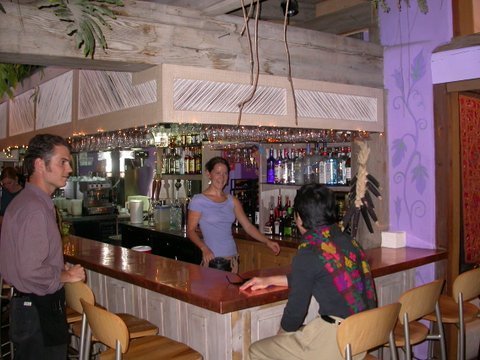 frequently found sitting at the bar enjoying both the margaritas and the food. Rachel prefers the house margarita (she thinks they’re the best in town), but Chloe gets the pomegranate version claiming it is healthier. It is certainly pink. Whether you chow down on green chile chicken enchiladas or one of Chloe’s favorites, garlic shrimp with calabacitas, all entrees come with garlic bread—not sopapillas. It’s tradition.