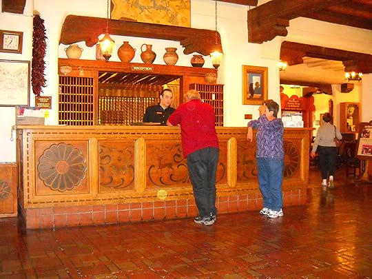 For our Reluctant Medium, Rachel Blackstone, it is a gathering place. After a strange and frightening event at High Desert Country magazine office, Rachel Blackstone and her office crew met in the La Fonda bar where they could enjoy the fireplace and sample the Mexican beers.