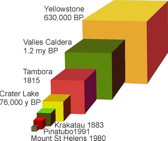 “Are you aware that the last time the Yellowstone erupted that ash and dead animal bones were found as far away as Nebraska? The three Yellowstone eruptions we know about produced enough ash to fill the Grand Canyon and were 2500 times larger than the 1980 eruption of Mount St. Helens. Today, if Yellowstone went off it would immediately kill 90,000 people. Those not dead would be standing calf-deep in ash. The nuclear winter to follow could cause famine as the great breadbasket of the world, the States, would likely not be able to grow much.”
