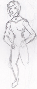 All of these designs suffer from the obvious problem that I can’t really draw but they helped me to envision the character, which in turn informed my description of her.