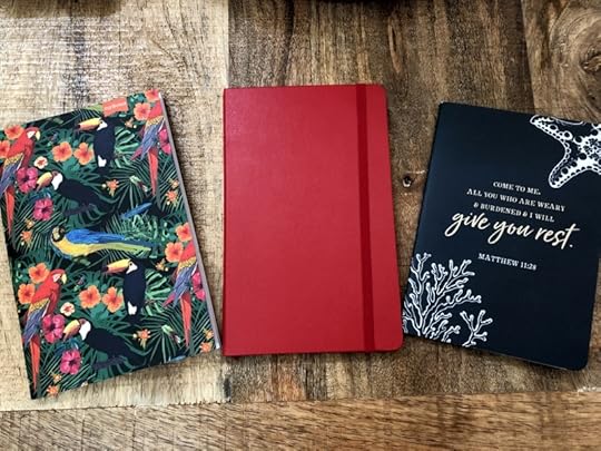 My red Moleskine is in the middle flanked by my current bullet journal on the left and one I’ll use later in the year on the right.