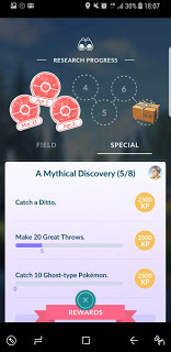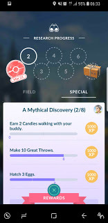 So, the PoGo Mission continues. Yesterday I started with three special missions, and on Chapter 2 of "A Mythical Discovery". Given that it was still the Easter Eggstravaganza event, that third goal didn't take long to get out of the way.