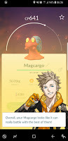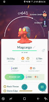 To earn my second sticker, I caught my third fire pokemon. That grass-based reward? That's a special pokemon that arrives for you to catch. In this case it was a cute little Magcargo with some very nice stats.