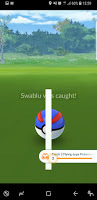 Given I was walking by a lake, it was nice to see a fishy - even if it was on the path, and not over the water. Mind you, that goal to make 3 Nice throws in a row, was a LOT harder than it looked, but at least the game let you know when you broke your streak. Also nice to know was that any throw better than Nice - such as Great or Excellent, for example - counted as Nice (given it was better), for which I am very grateful.