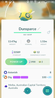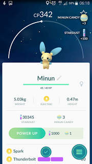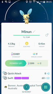 The second thing I didn't notice yesterday, was that any weather effects also show in the pokemon's stats. Take a look at this little minum, for example: