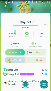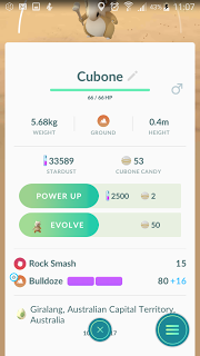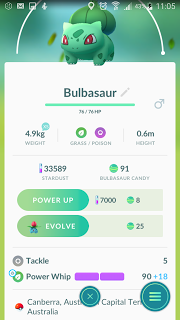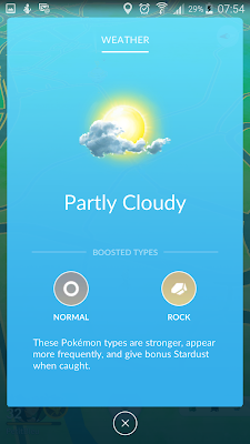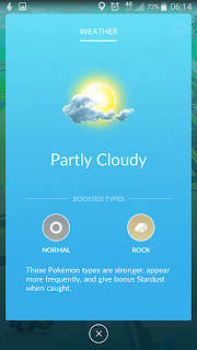 It's pretty cool - especially if you tap it, to get the next screen. See? A pokeweather app! I've no idea how that is going to affect gym battles, but it's a good indication of what you'll find when you're out walking.