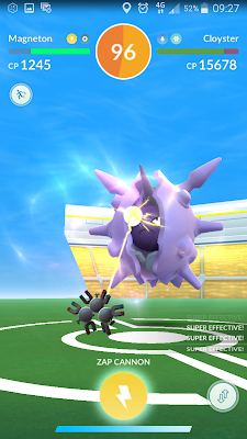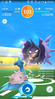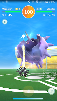 For the curious: No. I did not defeat the cloyster. Apparently, I need bigger pokemon to take on this kind of raid alone. I'll work on that :-)