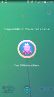 Medals earned this week include the bronze level of Berry Master, the silver level of Gym Defender, and the gold level of Johto, thanks to a newly evolved Ursaring.