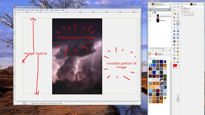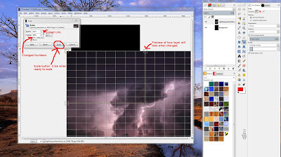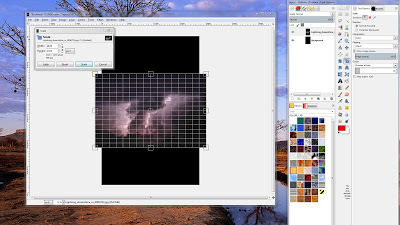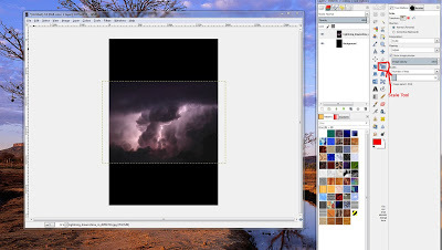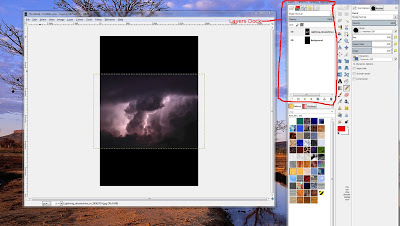 Click on the Layer you want to work in. In this case, it is named after the image I imported, so I will click on the Lightning_dreamstime layer and it will turn blue. In the image screen, the layer will be surrounded by a dotted yellow line. Anything I do now, will be done to that layer. Because I want to resize it, I click on the Scale Tool