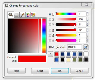 In this case the colour is not correct. So I click on the colour selection, and a small window pops up showing the current colour.