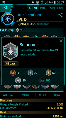 The sojourner’s medal is earned by hacking an Ingress portal once a day, on consecutive days, or, as the medal says: “hack a portal within consecutive 24-hour periods”. Here are a few tips on how not to miss a day.