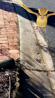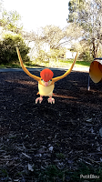a pidgeotto at the playground, a pidgy on my hat, and a pidgy the wasn't going to let me pass...