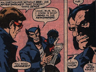 The reader is left with a big question. How did Wolverine come to know how to read Japanese? This could have launched a whole new story that explained exactly how this had happened, why he knew the language, and related his adventures in Japan in some previous time period. But Claremont and Byrne had the sense to know that planting a seed of mystery in a reader's mind can be a thousand times more effective than coming out and hitting them over the head with a fully detailed story. And there were other hints too. At a later point in the series, Wolverine revealed that his name was Logan. But was that his first name or his last name? Was it even his real name, or just another alias he had gone by at some point in his shadowy past? That also would not be made clear at any point in the near future. Wolverine was a fascinating character because of what we didn't know.