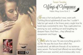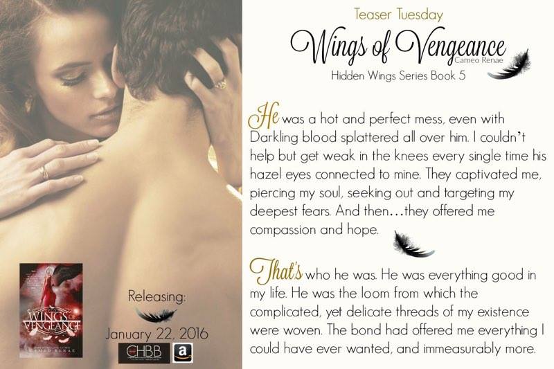 Title: Wings of Vengeance (Hidden Wings Series, Book Five)Author: Cameo RenaeGenre: YA Paranormal RomancePublisher: CHBBExpected Release Date: January 8, 2016Cover Design: Regina Wamba at Mae I Design PhotographyEdited by: Victoria Schmitz - Crimson Tide EditorialHosted by: Lady Amber's PR