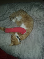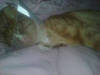 This morning I managed to escape from the house and go shopping. If my husband wasn't home I would not have moved anywhere but we needed food. But what did I do when I get home? I went to bed. I crawled right up in there and fell asleep. Even my cat knew that I was ill and gave me lots of sympathy.
