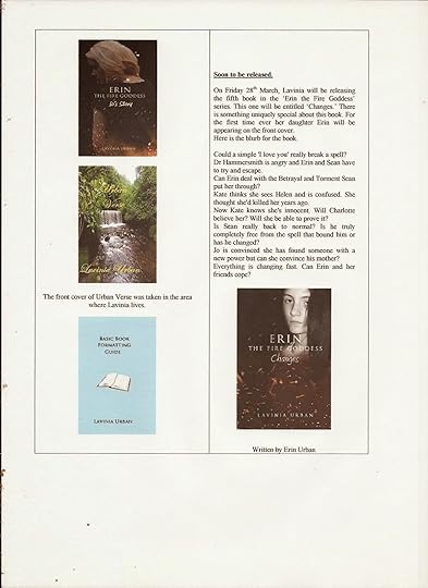 So what is planned for me for 2014? I am working hard on completely book 4 (technically book 5) in the Erin the Fire Goddess series which I have entitled Changes. I would also like to try and complete another book that I have been working on called Forever in my heart and another book that I don't have a name for yet. Also my daughter Kasey-ray has asked me to write a book about her, so of course I have already drafted the plot and wrote the first chapter. She is really excited but I have no idea when it will be complete.Already in my head the next book in the Erin the Fire Goddess series is screaming at me to write but I keep having to bat the characters away and tell them to blooming wait until I have completed the current book in the series. They are slightly quiet for now.I plan for Changes to be the epic. So far i think it will be the best book in the series so far. It is jam packed with action and OMG moments that, should, leave you the reader gasping for more. I am also trying to make this longer than the other books and so far I seem to be right on track.