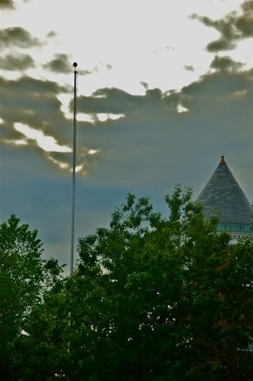 Today, for the last time in my life and probably for the last time, Venus came between the Earth and the sun, and if I had looked up at the sky at the right time and there had been no clouds, I could have seen that planet pass across the face of the sun. Instead, whenever I looked up, I saw clouds dramatically backlit by a sun I could not see. I took two poor photographs of what I saw, each with a flagpole from the Governor's mansion taking a place of prominence, and I called these photographs of the transit of penis, something else I did not really see today.