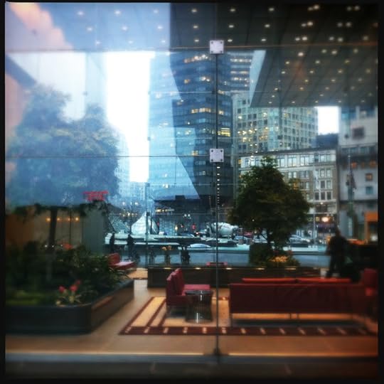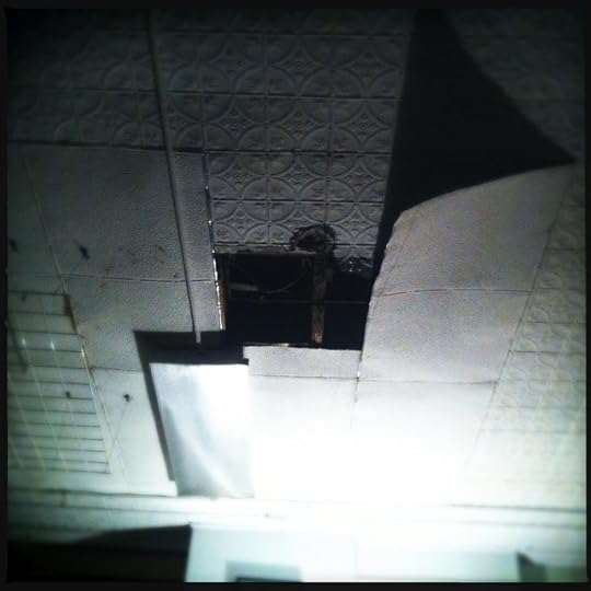 Yet there is something else going on. For the last couple of weeks, I have had two small visual defects appear in my vision, not frequently, but regularly. The first is the most befuddling: ever more frequently, I am misreading signs, actual signs out it the capitalist viewshed. As Anne was driving me around Ulster and Dutchess counties, on opposing sides of the Hudson, this weekend, I would tell her how at first glance I was misreading signs. This morning as she drove me to the bus station in Kingston, I conflated two words into one, replacing letters in the second word with the n in the middle of and the t near then end of the first word. I have not kept track of the details of these misseeings, so I don't know exactly how they are working, or if there is some message in the distortions I am wreaking upon the language.