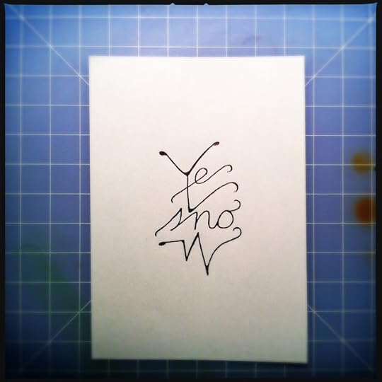 The first fidgetglyph I created yesterday, at the feet of my phone, was a simpler one, wordless, and less successful (though those last two descriptors are not irrevocably tied together in the realm of fidgetglyphing). My experiment here was with ambiguity purely. (As I demonstrated once, years ago, in an old poem forgotten by everyone but myself, I am ambiguilty.)