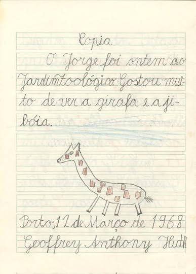 At the age of six, while starting my schooling at the Deutsche Schule zu Porto in Oporto, Portugal, my teachers trained me in penmanship in a very prescribed way. Before I wrote any letters, before I wrote connected e's or s's in a row, I wrote shapes in a row. I was taught to repeat shapes and connect them to identical shapes, so much so that by the time I was seven I could write almost completely controlled letterforms around a drawing of a giraffe. Actually, I felt, I could feel in the fragile bones of my fingers, how writing was a form of drawings.