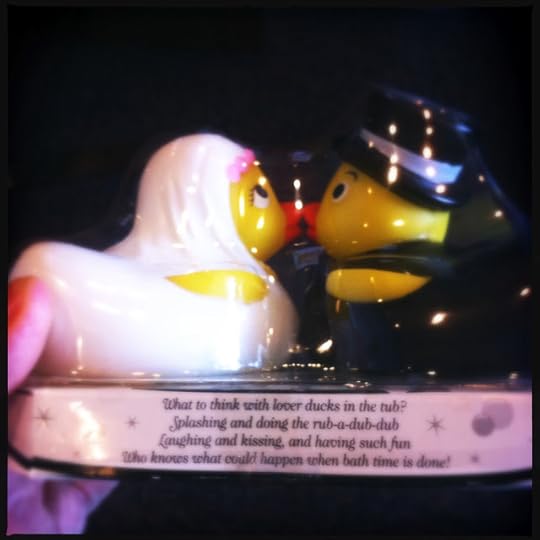 Just in case you thought poetry was passé, here's evidence that poetry is everywhere, even accompanying packaged rubber duckies dressed up for wedding showers. And what perfect control of meter. And that last line is not creepy at all.