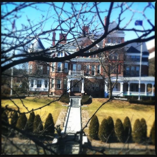 From one of the three front windows of my apartment, I can see right into the front door of the Governor's mansion in Albany, New York. On occasion, I can watch guests enter the gate at the bottom of a small hill and make their way up a sloping pathway to that door. Usually, however, guests park in the lot at the south end of the mansion, as I myself have done on a few occasions. If I visit the mansion for another event, I will merely have to cross the street.