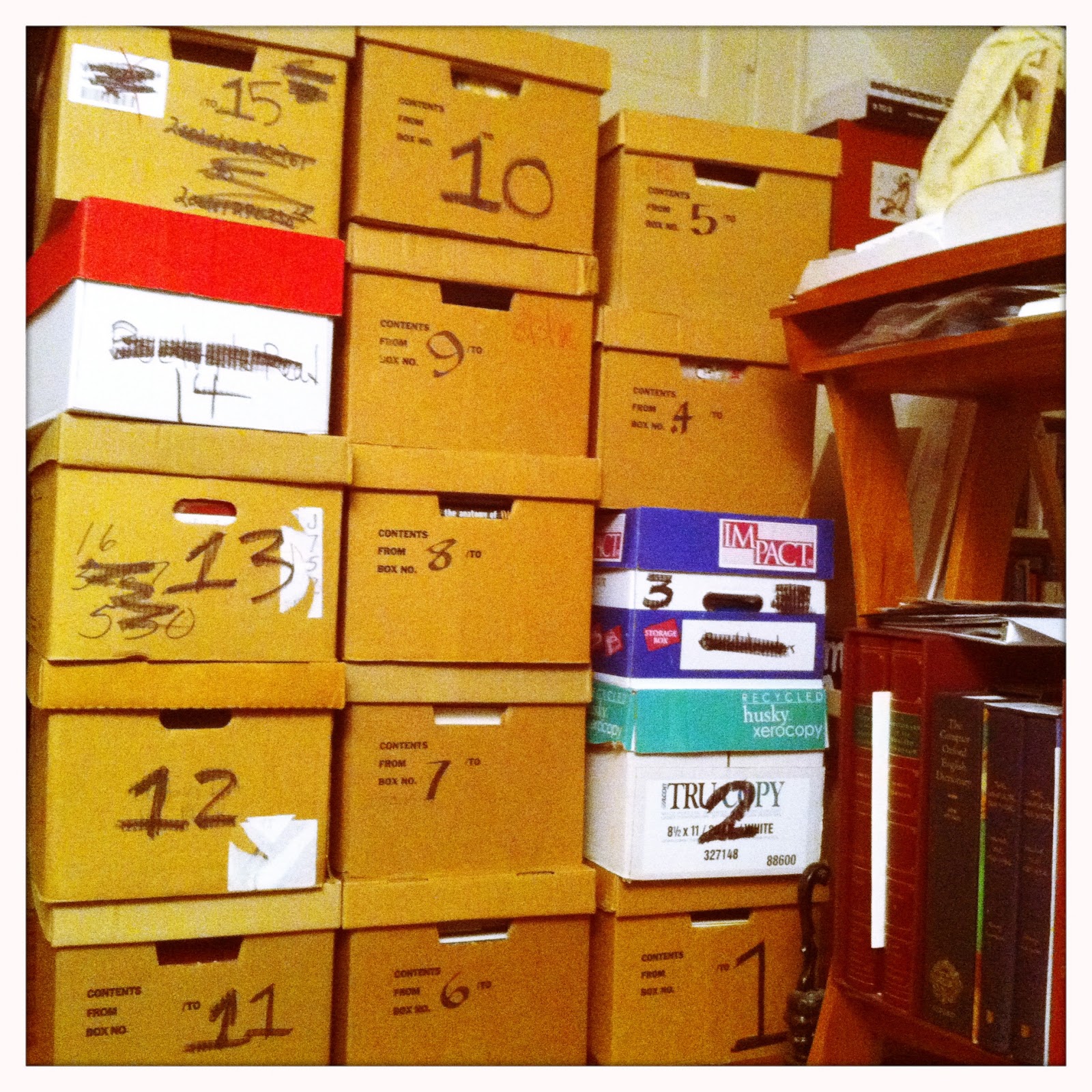 After weeks of working at it, weeks of searching the house for dictionaries and other books of language hiding in nooks, weeks of putting them into boxes, I have not prepared exactly 15 boxes of an estimated 80 or so for donation to the University at Albany.