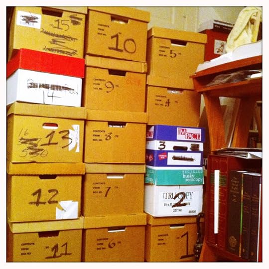 Unfortunately, I've been working on this project, various parts of it, for months, so I should be further along. But it's more complicated that simply books. I'm also preparing my papers for donation. And even though a good percentage of those are in perfect order, quite a bit remains unorganized. When I'm not working on organizing books, I'm focused on organizing my personal papers, and I have three boxes of an estimated ten of those in perfect order. But about half of what remains is in order, they just don't fill entire boxes yet.