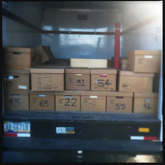 Once I arrived at the University at Albany, I backed the truck up to the loading dock, and the five or so of us there unloaded this huge collection of books. The process was fairly quick, but tiring, since I'd spent the morning, with Nancy helping, moving 82 heavy boxes down three flights of stairs and into a truck. Once the boxes were moved into special collections, I helped load them on boxes, and then I was ready to go. I said goodbye, drove the truck back to the rental place, drove the car back to the house, made two other donations (one of about 200 books to the public library), and I kept working until I decided to lie down for a few minutes and didn't arise for fourteen hours.