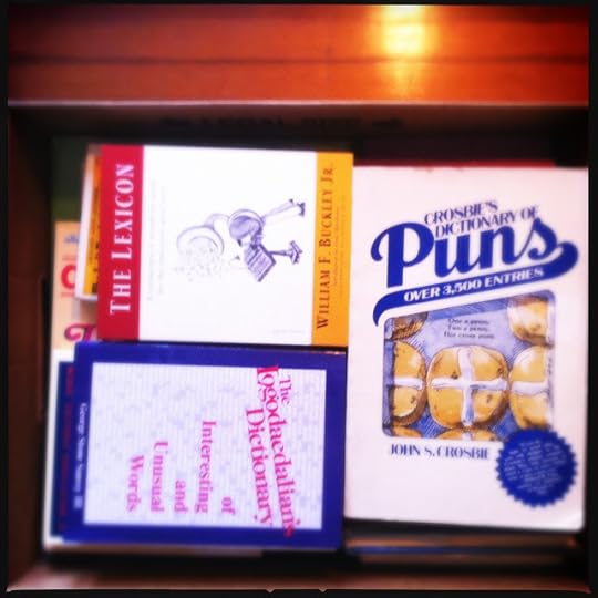The core of this collection is dictionaries, primarily in English, but also in other languages, particularly French. But the collection has any kind of publication concerned with language: thesauri, grammars, style guides, monographs, books of essays. And there is a second, deeper core to the collection, something even stranger. In the collection, there are over 500 antidictionaries, which are dictionaries designed primarily to entertain than to instruct. Some are focused on redefining words in the language (such as the three dozen or so versions of Bierce's Devil's Dictionary within that collection), some invent and define neologisms, and some of them merely display strange or obsolete words for our entertainment (most famous among these probably being Mrs. Byrne's Dictionary). The variety of these (particularly in terms of quality) is huge, and I have these in a couple of other languages, including a good selection of antidictionaries in French.