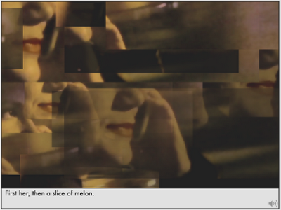 Entitled "Notes Noir," its credits are as follows: concept and roadwork by runran, visualization and code by crissxross, based loosely on animations by babel, photograph of Ailsa Dyson by Gordie Agar (Winnipeg), texts adapted from One Million Footnotes by poet Geof Huth, and music loop from "Palais de Glace" by media artist Talan Memmott. It's a beautiful haunting little accumulation of esthetic inputs, and my text even adds to, rather than detracts from, the whole. It's worth at least a couple of minutes of contemplation. It even requires it of the reader/listener/viewer.