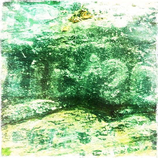 The rock is a touchstone, is the one stone of our sight and scent. Breathing it in, I can smell the lichen in its yellow-green, I can smell its dankness as well as I can smell the dryness of brown leaf. A flick of the tongue and I could taste it as a scent strengthened by firmer contact.