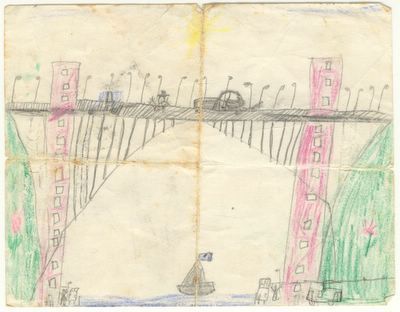 Geof Huth, "Ponte D. Luis, Porto, Portugal" (ca 1967, artist aged ca 7)For the past few weeks, I have existed on tumblr, the microblogging platform, where I have been publishing pwoermds, photographs, short audio poems, and occasional videos. All I really did was revive my old but short-lived tumblr blog, m+i+n+i+m, leaving it focused on minimalist poetry.