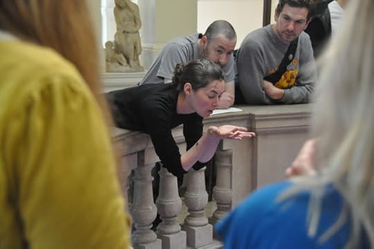 During the opening of the Text Festival and its myriad art exhibitions in and near the Bury Art Gallery, in Bury, England, Sarah Sanders performed the simplest of acts at the oculus on the second floor of the building, and it was a performance that carried down onto the first floor.