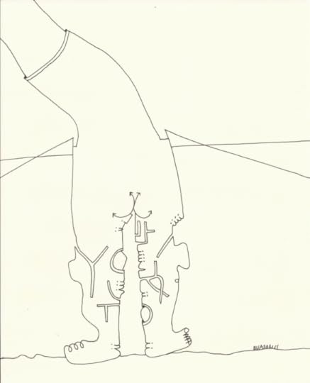 But tonight I want to think about his drawings, which I find exquisitely beautiful. His control of the line is so deft that I year for that control myself (and I have some control, but not like his). I want the eye he has, the hand he has to move so deftly, so apparently effortlessly, through the making of these spare but lively and ultimately beautiful pieces, which also lean surrealistic.