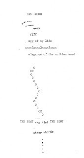 Today, Phil Davenport, an almost twin of mine (bald men are considered identical) confirmed that he'd like me to send him a typewriter poem for an exhibition at the Transport Museum in Bury, England, this week, so, before I left this morning on a drive to JFK for a flight to England, I looked through my files and picked out three typewriter poems to send him, but before I scanned them I decided to create a typewriterly poem from scratch, went to the basement, kneeled in front of the ancient manual typewriter we still have, which rests on a tiny pupitre, and I typed out a little poem that I should have called "EINE POEME," but which I called "EIN POEME," a poem that was basically a standard syntactic textual poem but which included many typewriterly effects, enough so that its original typewritten form is necessary for the appreciation of it, assuming that is possible, and I scanned all four of these poems and emailed them to Phil in Manchester.