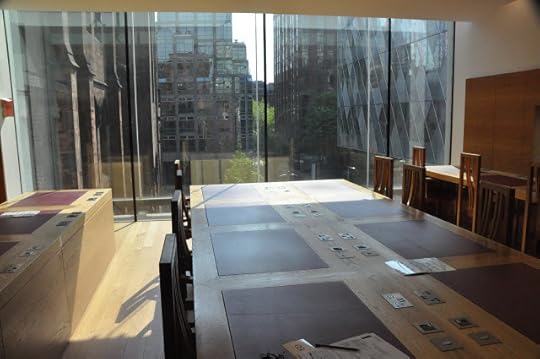 I was very organized in this work. I was the first person admitted inside Rylands Library today and the first admitted to the special collections as well. After providing the required two forms of identification and letter of introduction, I began to work, explaining to the archivist that I had no time for study and would spend my time photographing worked by houédard. In about an hour, I took over 200 photographs, even though I was never allowed to have more than one folder at a time, even if the folder had but one piece of paper in it.