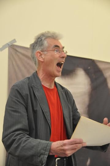 Jaap Blonk Performing Part of Kurt Schwitter's "Ursonate," Bury Art Gallery, Bury, England (1 May 2011)The last day of the Text Festival was more of a day for poets and artists. We gathered in one of the open spaces in the gallery, and Ian Hunter led a group of sound poets and academicians in a discussion of "Ursonate," a sound poem by Kurt Schwitters that intrigues all of them. The discussion was informative and personal, each participant admitting to how "Ursonate" captured their imagination and what strange things that enchantment made them do. (Two of the panelists memorized the entire piece.) One of the joys of this part of the show was watching the incomparable Jaap Blonk perform part of "Ursonate" while showing us photocopies he'd made of the text of the sound poem in 1976.