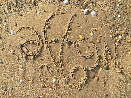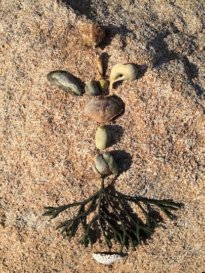 Geof Huth, "I, Sea" (Star Island, Montauk, New York, 14 October 2015)In the shallow, and usually pebbly, sand, I scratched a few words. Occasionally, I enhanced these words with a tiny dead crab or something else I found. I call poems that I make in this manner sandglyphs, though usually I make them next to the throbbing waves of the sea, so that they disappear seconds after being created. This time, I left them to be covered and washed away by the tide.