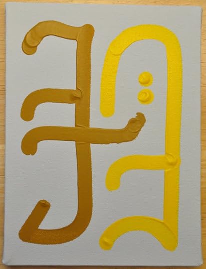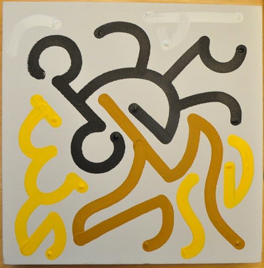 With this little discovery, I wanted to try another painting, so I pulled out a (10-by-10-inch canvas) and began to paint as if I were creating a fidgetglyph by hand. The field of play was larger, as was the nib of the "pen," but otherwise the experience was like creating a fidgetglyph. I'd found a wait to paint naturally, which was good since I'm not very handy with a brush.