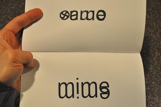 The poem "ssaammee" (note these "titles" are only my sequential transcriptions of these poems) almost seems to spin, especially those esses (which resemble a triskadelion or a fylfot*) and those off-kilter e's. The poem undermines itself, it is all aporia (in the deconstructionist sense), it shows how it is nothing like what it says it is.