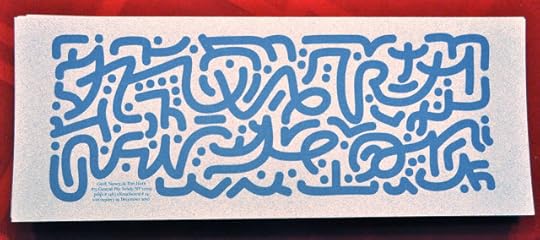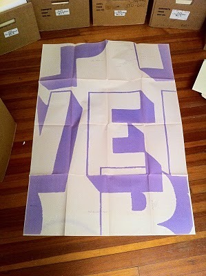 But I have wonderful publications and gifts from people, most of which are leaving me tomorrow. Almost at random, I chose this piece by Bob Dahlquist to remember. Bob is a designer who makes his living designing a typographic style to identify businesses. But he is a poet as well, a poet with type, and also with words, and he puts together large-scale poetic works on blueprint. This one above is a remarkable piece, but you need to get close to it to appreciate it. Up close, you can see the Canada geese (actually, a flock of birds each represented by the term "Canada Goose") flying above and among the giant letters on this page. And up close, you can see the hawk, much smaller, flying much lower across this typoscape. But these boxes are filled with beautiful visual poetry (the complete works of Márton Koppány, for instance, and great selections of work from Jonathan Jones, Nico Vassilakis, and Carol Stetser, to name a few), truly remarkable mailart (by Roy Arenella, Angela Behrendt, and frips, among many others), and some great poetry. Also boring stuff, I admit, because these boxes represent a certain fraction of the poetry world.