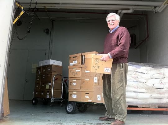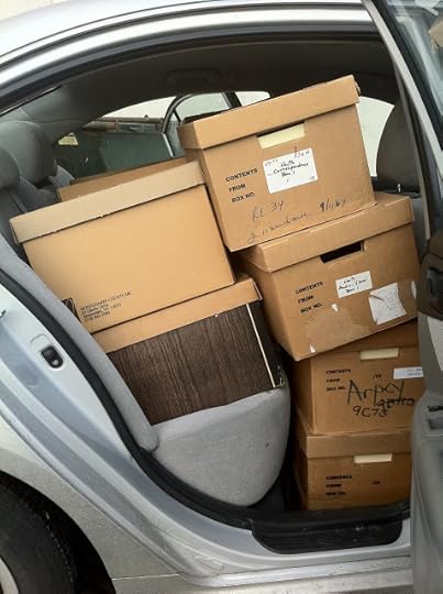 We spoke for quite a while, out in this mild winter day, about archives and other matters, Geoff making a joke about the quantity of my papers and the lightness of some of the boxes. (He'd just handled the box that was primarily T-shirts, which I noted were publications in this case.)