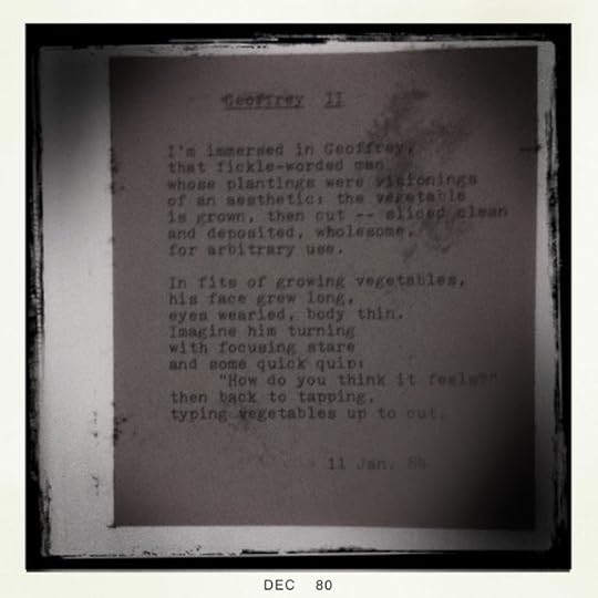 Somebody reached back to me through here (facebook) the other day - somebody I'd not spoken with since high school. She had given me what was called a Nothing Book (a bound book with blank pages back before they were ubiquitous - it was 1977) I have put bits in it over the years. Randomly. Geoffrey I and II were both in there. I woke up in the middle of the night the other night and remembered she had given it to me... could see the inscription on the inside front cover just as clear as day. I dug it up from the dust of forgotten books and thumbed through it.