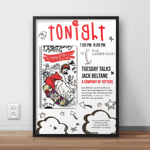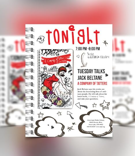 I love books, like love, love books, and when an opportunity rises for me to do some fun book art, I take it. Working in graphics at a library really brings a lot of them to me, too! Who would have thought? ;) Recently, jackofbells came in to discuss and answer questions about his book, A Company of Tatters, and I squeezed in a moment of time to create a series of flyers, a poster, and bookmarks to welcome our local author. I hope you and your fans enjoyed them, Jack!...
