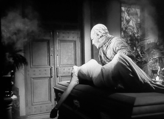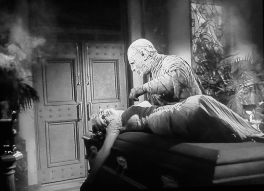 Lon Chaney Jr. escorts his victim (Elyse Knox) in “The Mummy’s Tomb” (1942)