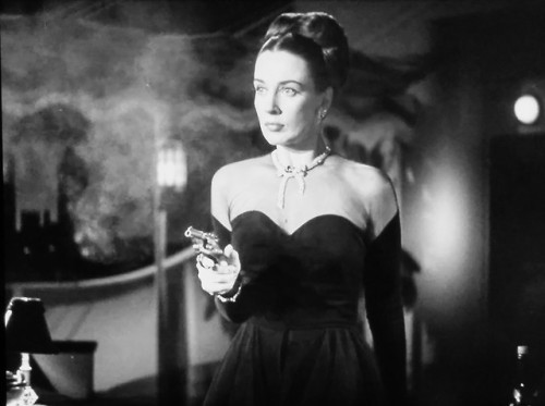 The ol’ stink-eye (and dames with guns) in “Song of the Thin Man” (1947). With Myrna Loy, William Powell, Patricia Morison, and Leon Ames.